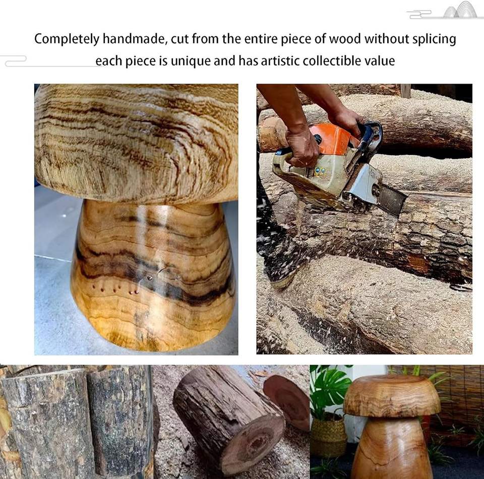 Sgabello a Forma di Tronco d'Albero Naturale, Tavolino a Fungo, Tavolo per Piante in Legno Naturale, Sgabello Statua da Esterno