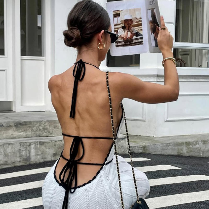 Elemento di moda:Semplice, Cut-out, Allacciatura all'americana, perle