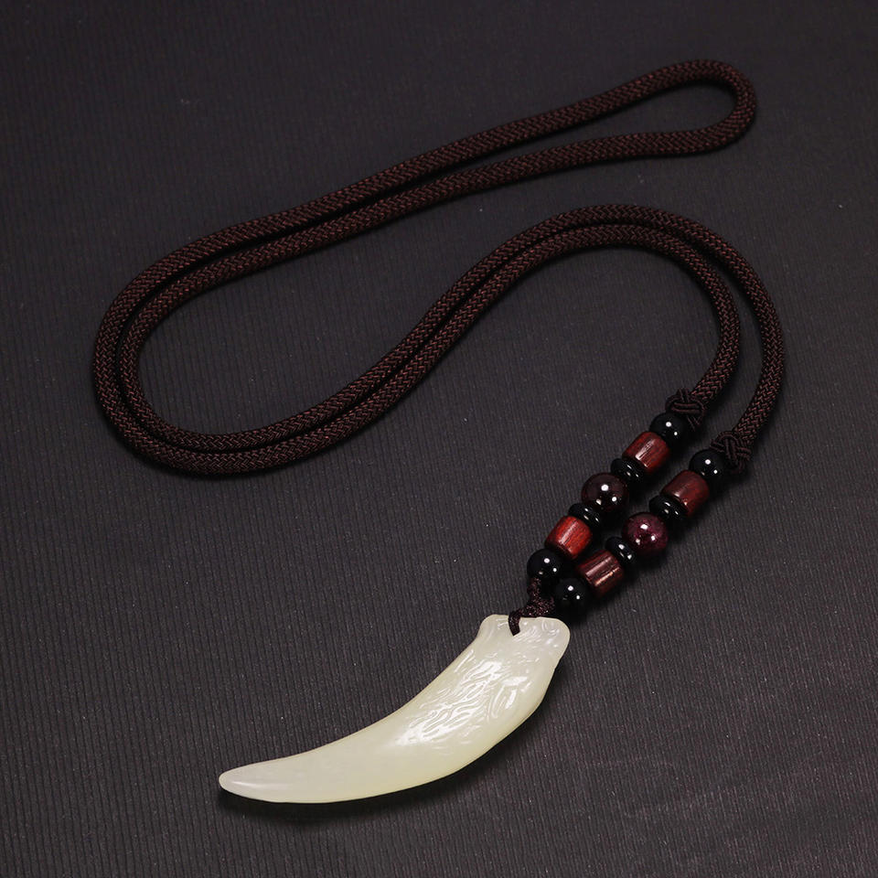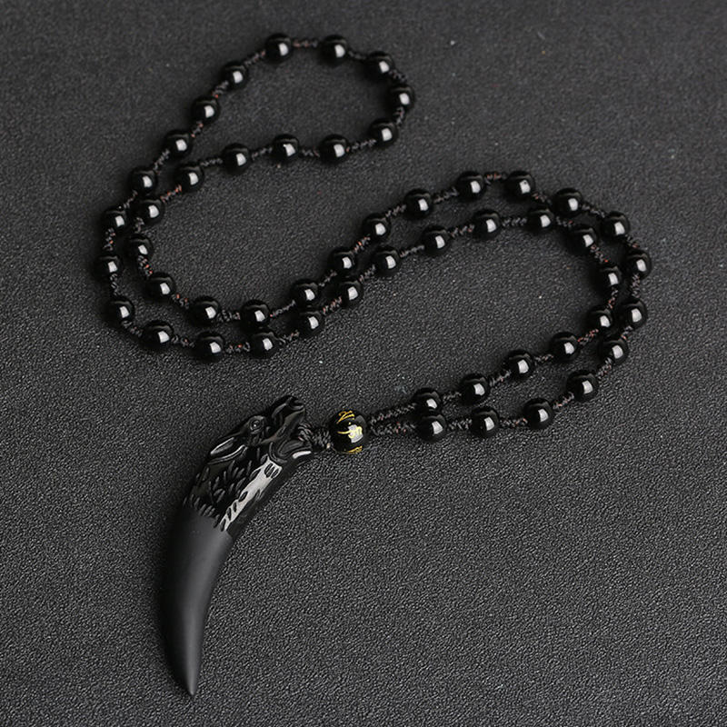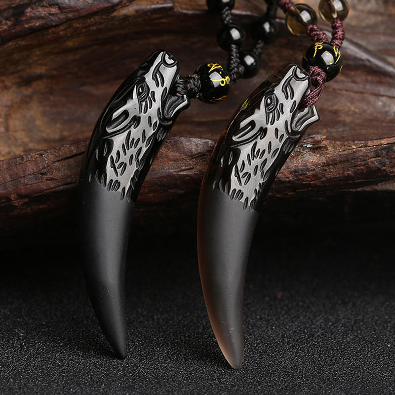 Natural Stone Black and Ice Obsidian Pendant Necklace Wolf Tooth Amulets and Talismans Couple Necklace for Women and Men