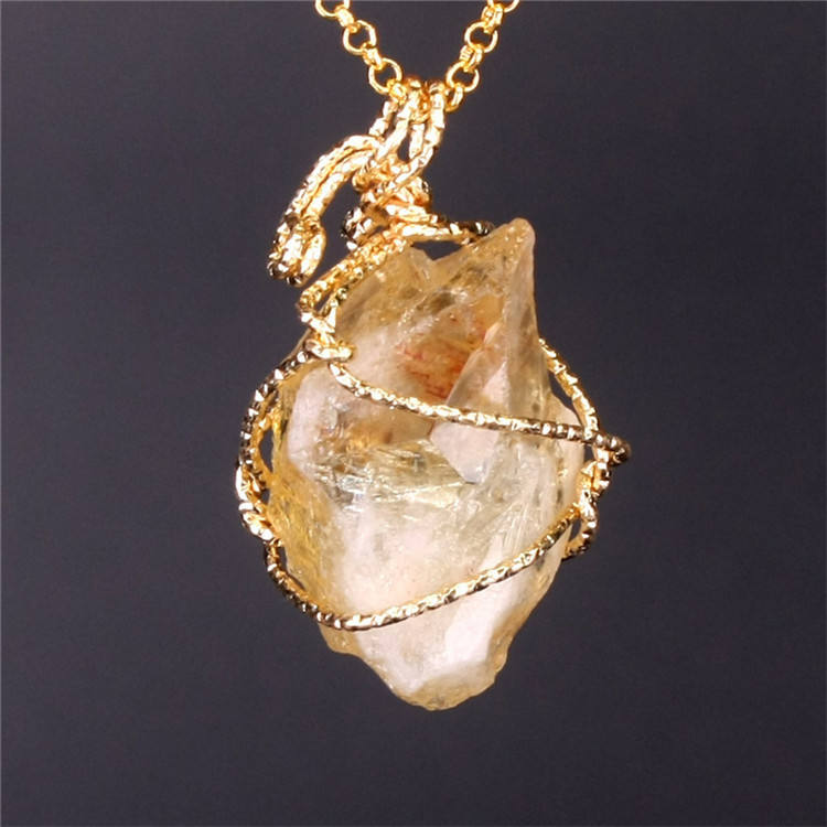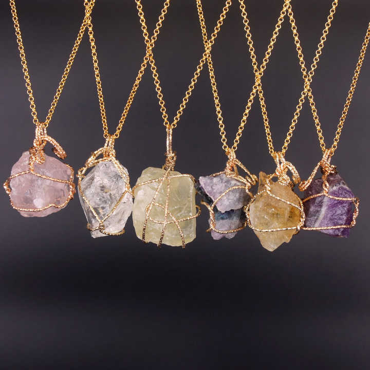 Natural Stone Pendant Necklace Small Rock Quartz Pendulum Amethysts Citrines Fluorite Pink Crystal Necklace for Women Healing