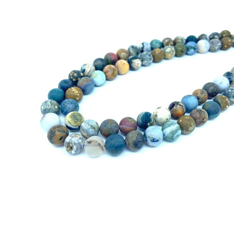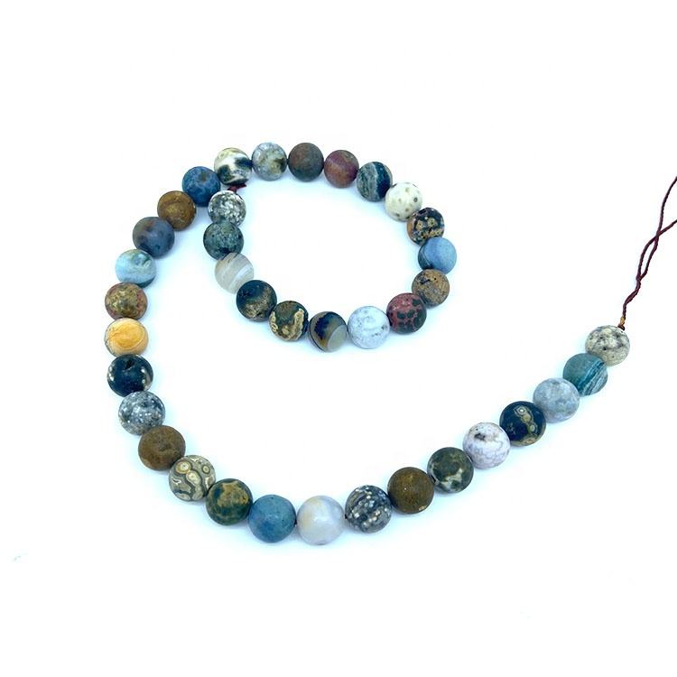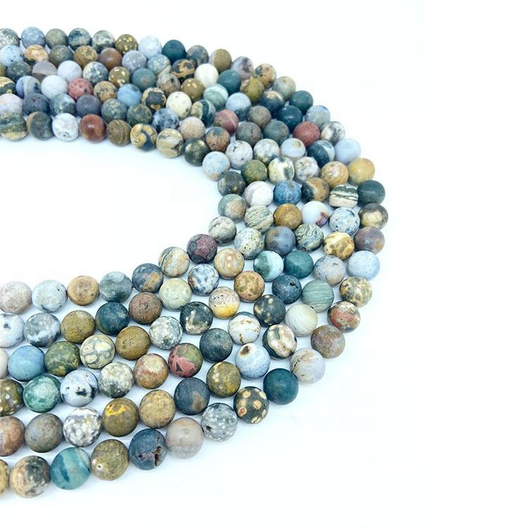 Natural Stone Round Frosted Marine Jasper Agate Beads DIY Loose Gemstones for Jewelry Making Bracelet Necklace Earrings