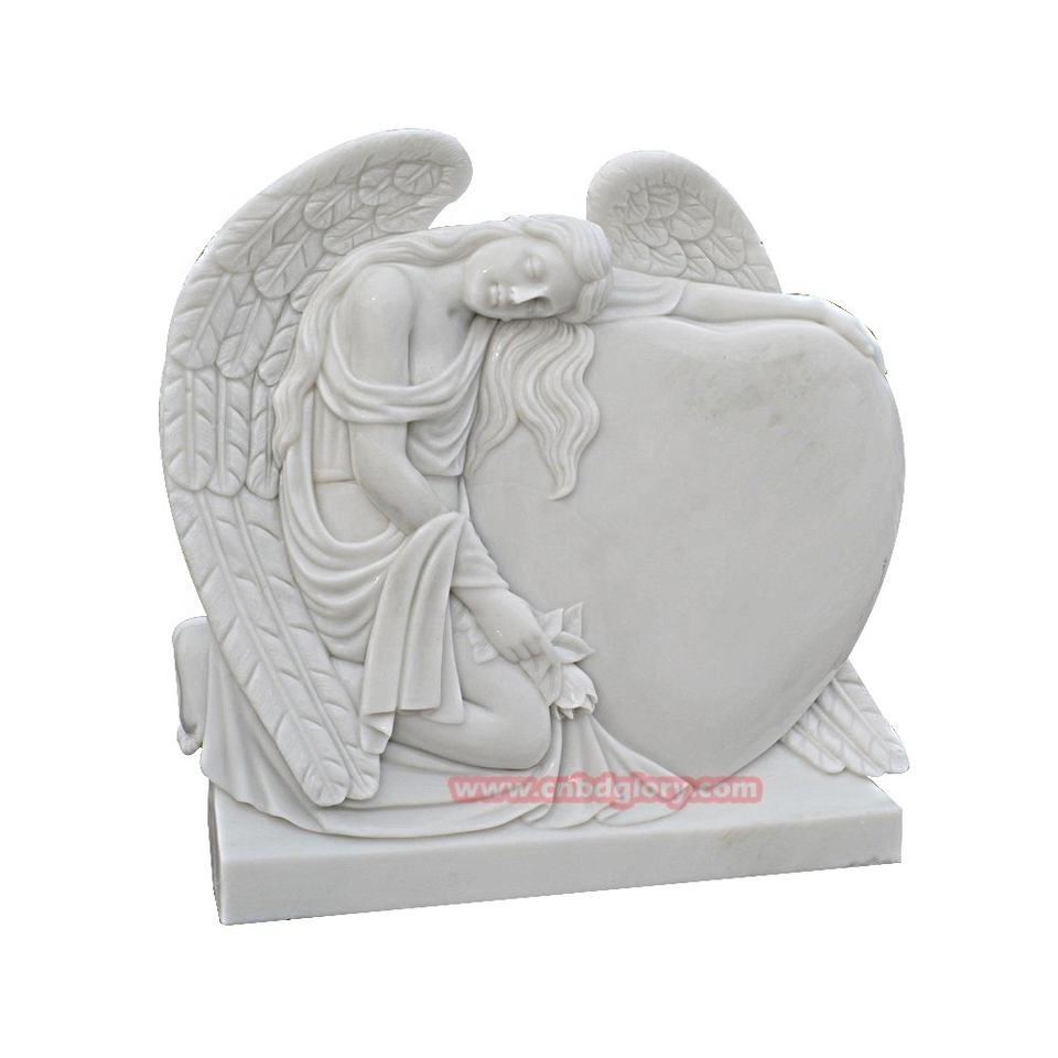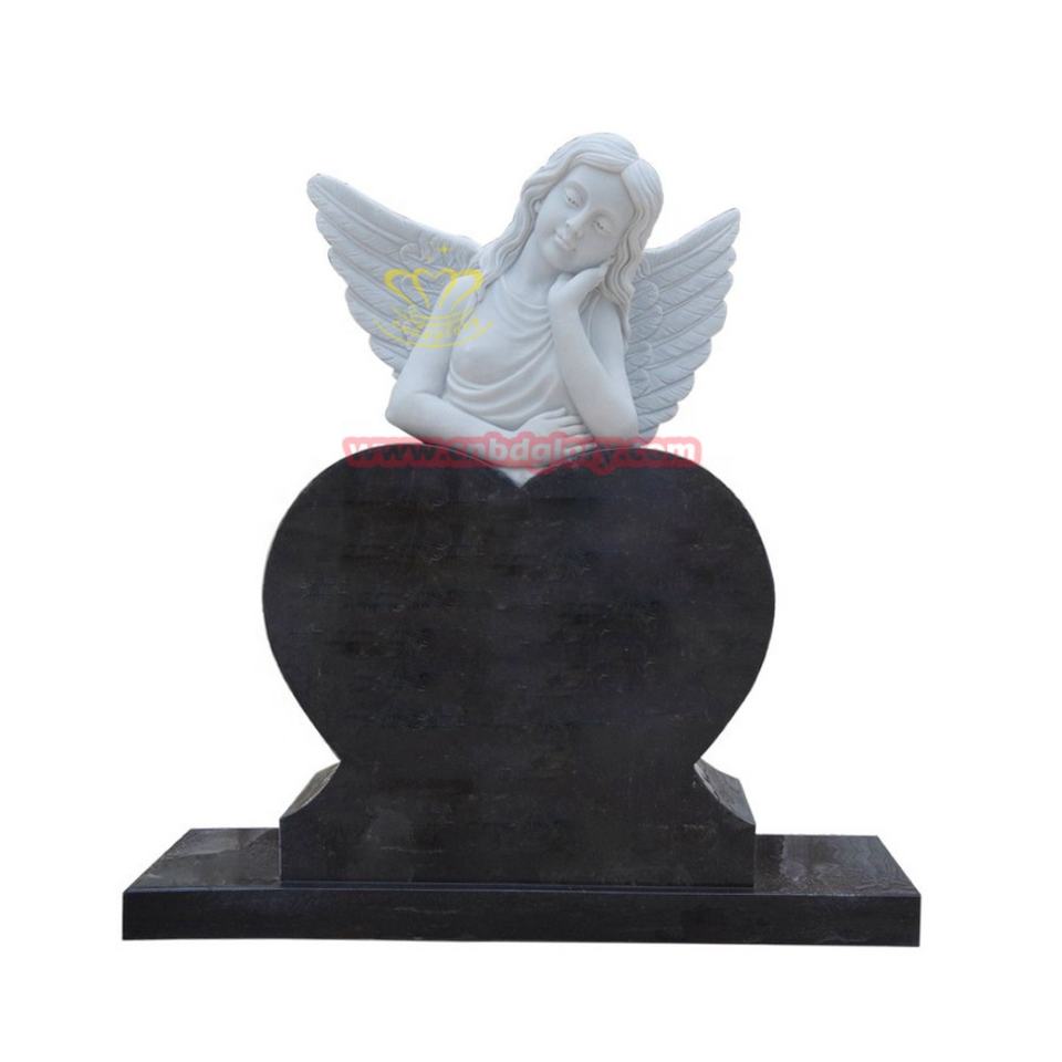 Statue di Angeli con Ali Bianche in Pietra Naturale, Lapidi in Marmo Nero a Forma di Cuore in Stile Europeo, Pietre Tombali in Granito