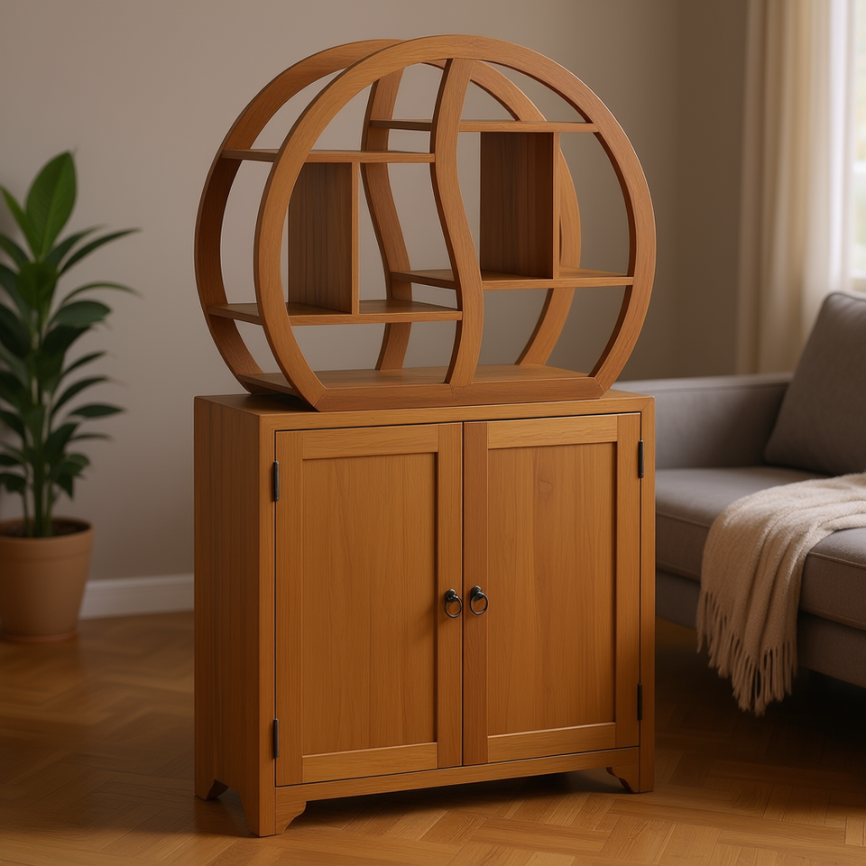 Teak Yin Yang Shelf Cabinet 5 Shelves Storage Living Room Furniture Modern Design