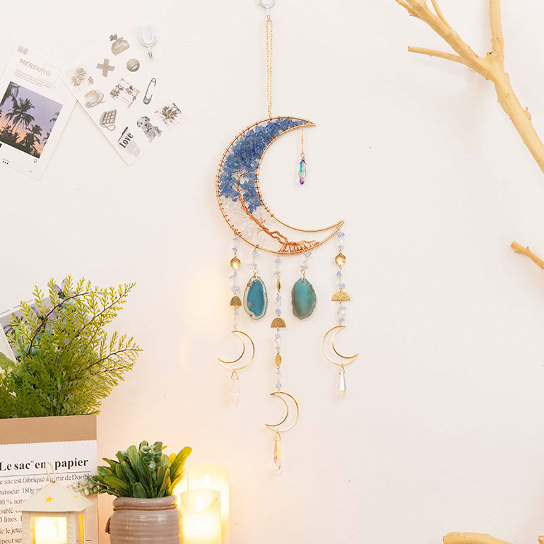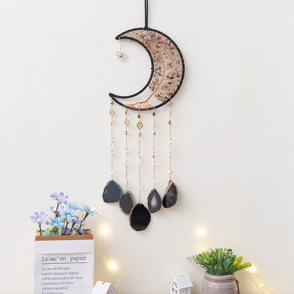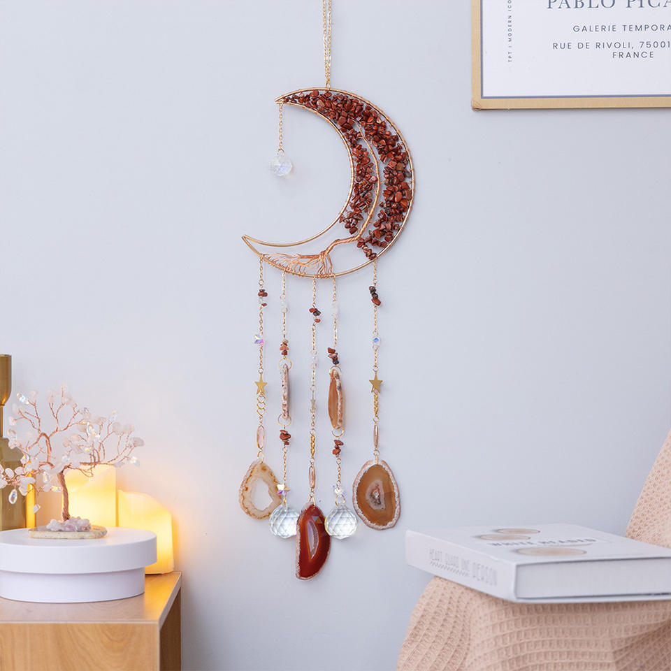 Natural Tree of Life Amethyst Crystal Dream Catcher With Healing Agate Wall Hanging for Bedroom Garden Decor