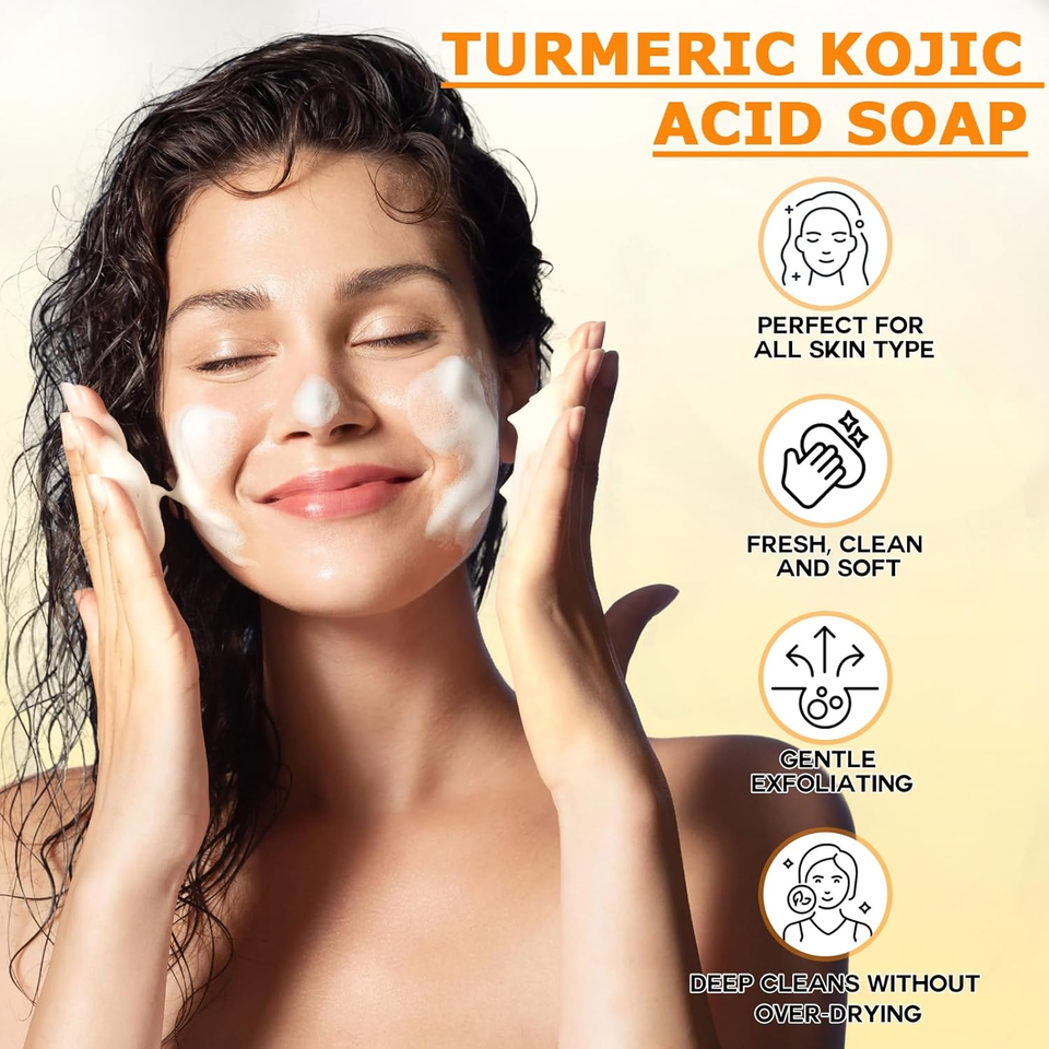 Sapone Naturale alla Curcuma Fatto a Mano per Viso e Corpo, Schiarente, Esfoliante, Riduce l'Acne, Sapone con Acido Kojico