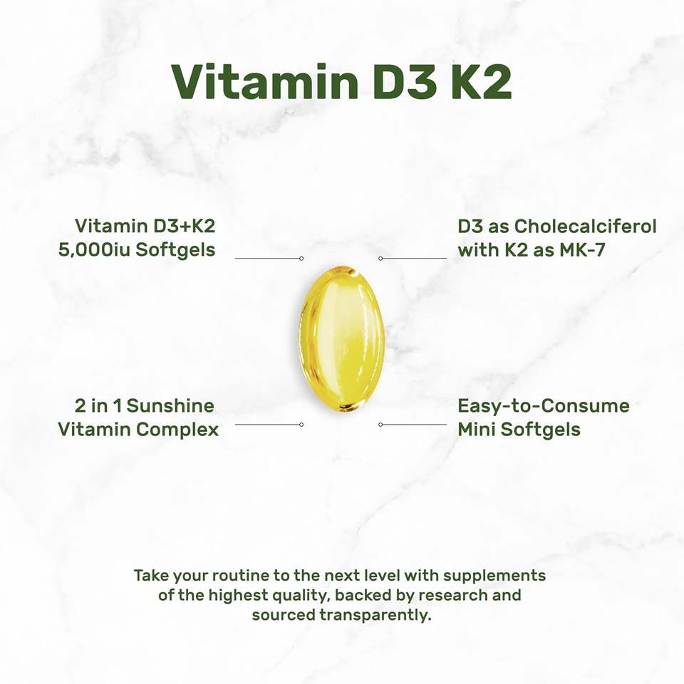 Principio attivo: Contiene vitamina D3 (colecalciferolo) e vitamina K2 (tipo MK-7), essenziali per la salute delle ossa e il supporto del sistema immunitario.