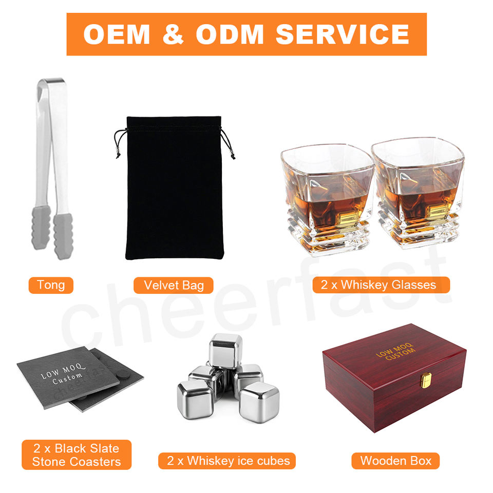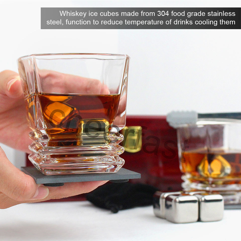 Nome articolo:In acciaio inox whisky cubetti di ghiaccio con classi scatola di legno Set regalo