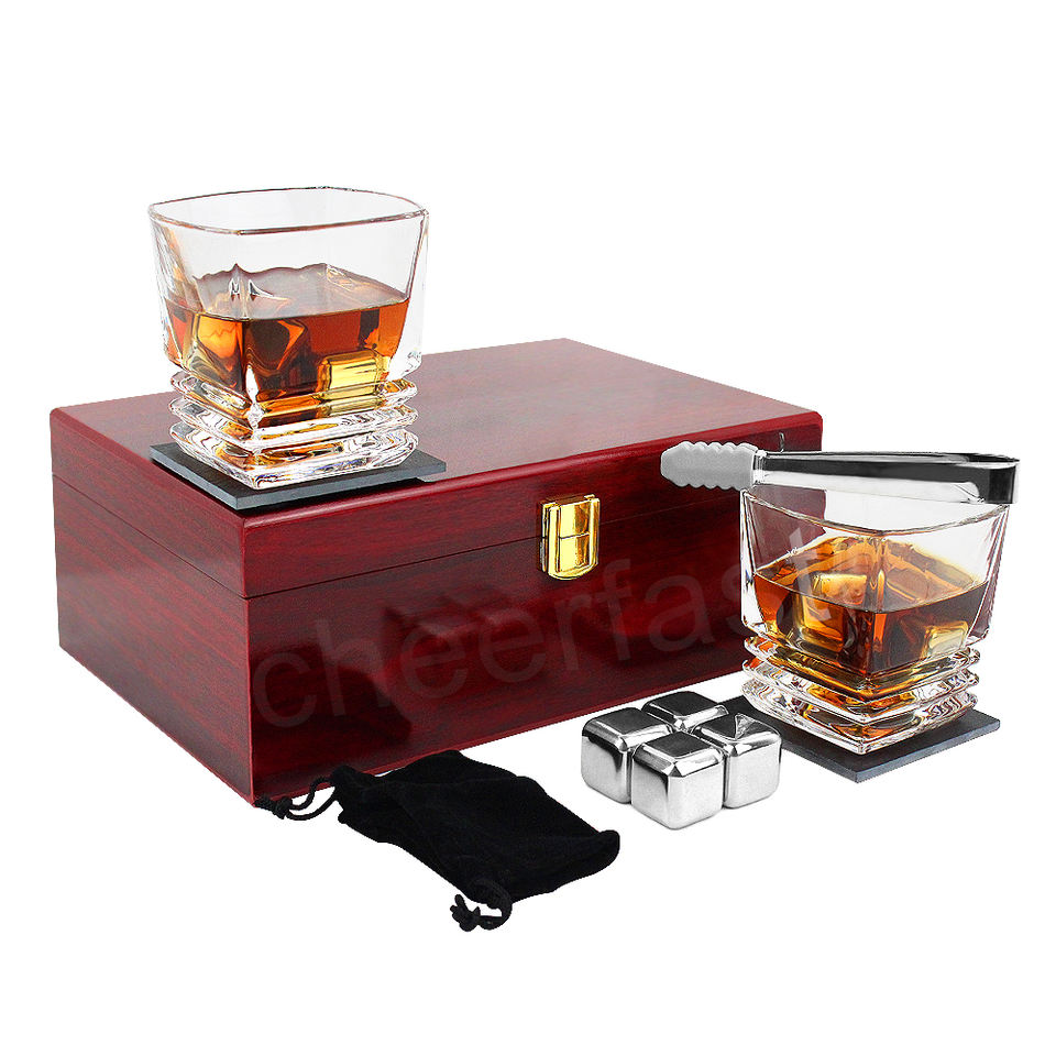 In acciaio inox whisky cubetti di ghiaccio con classi scatola di legno Set regalo