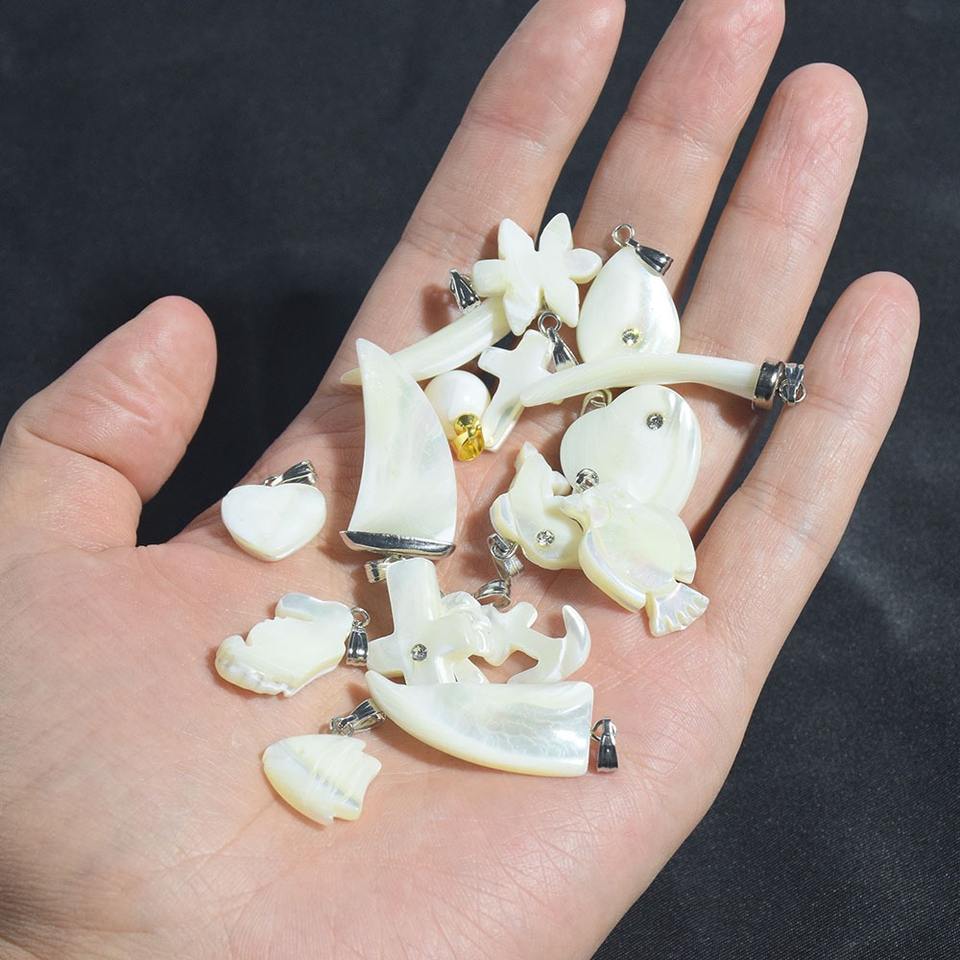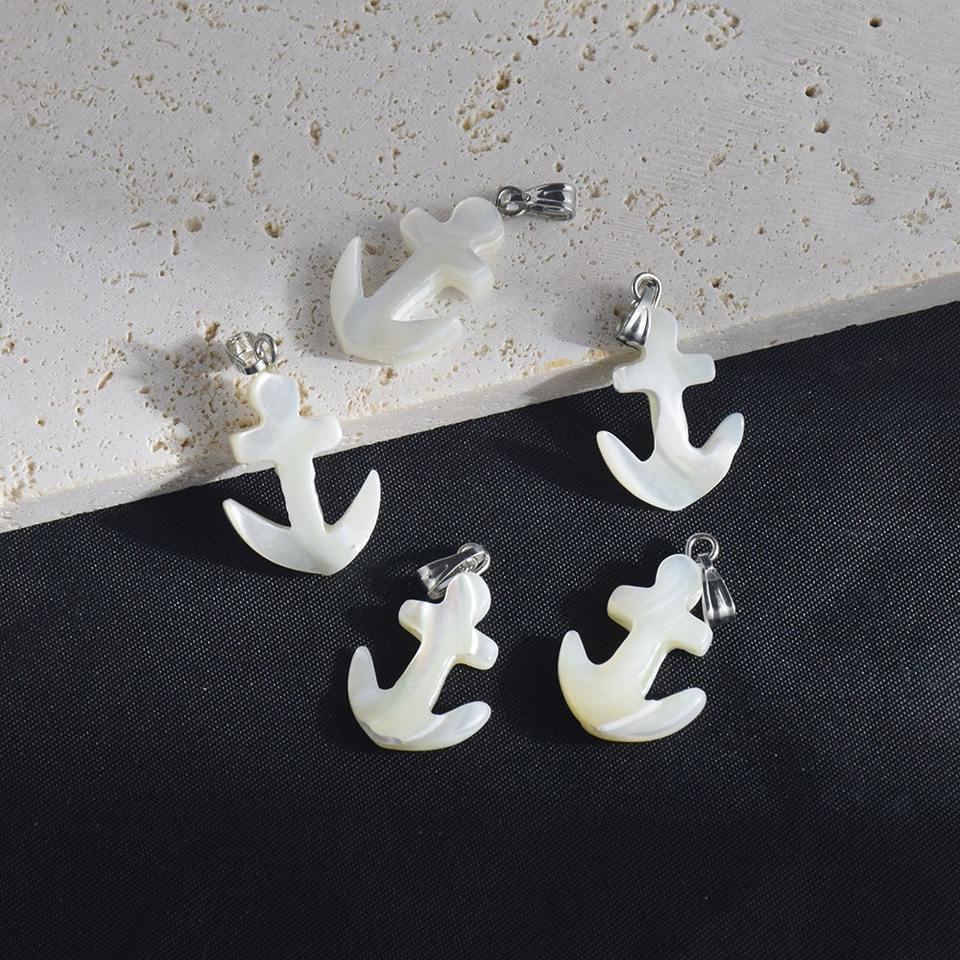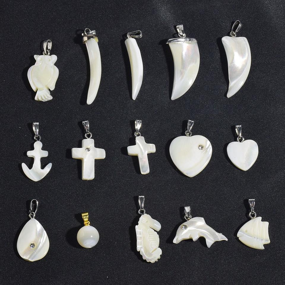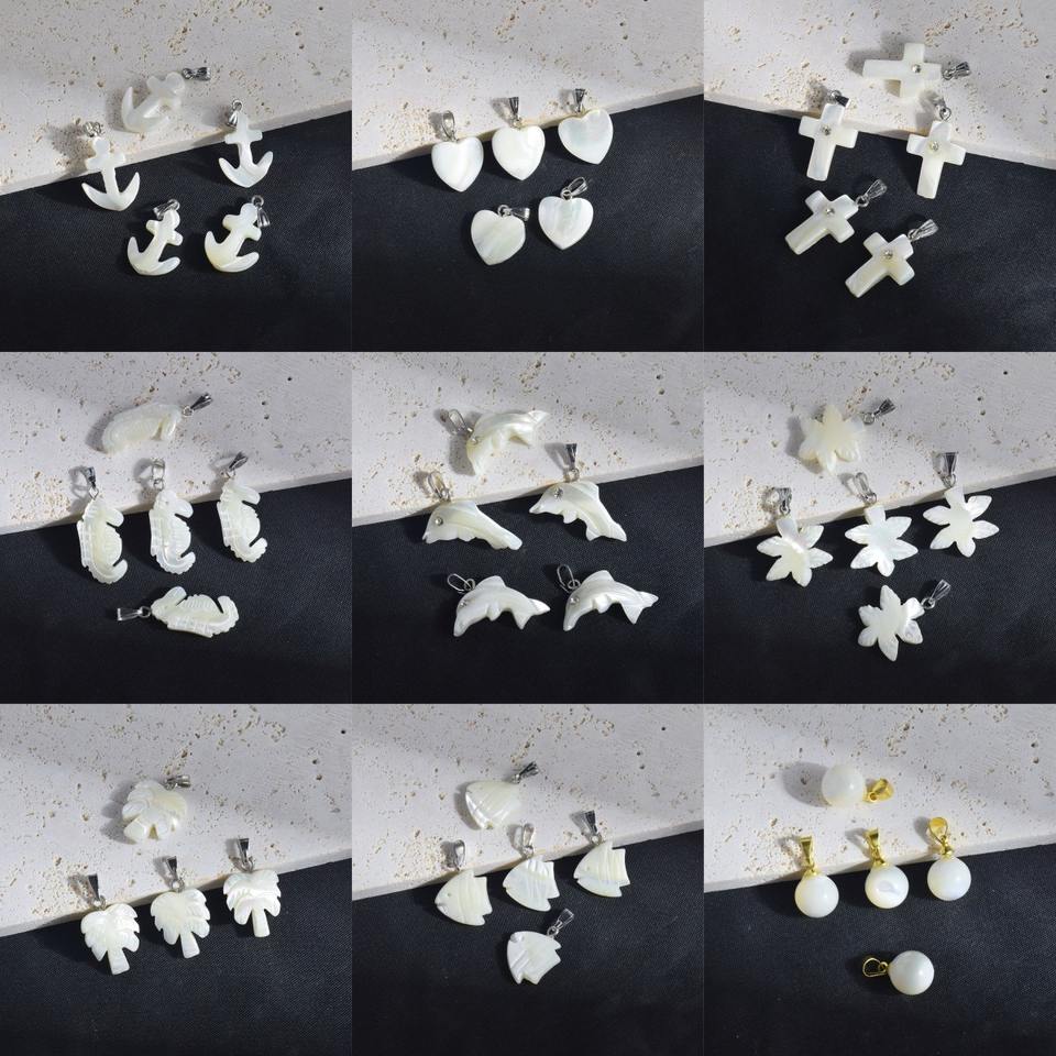 Ciondolo a Cuore in Madreperla Naturale Bianca, Ciondolo a Croce in Madreperla Bianca, Ciondolo a Cavalluccio Marino in Conchiglia Bianca, Ciondolo a Ancora in Conchiglia Bianca per Creazione di Gioielli