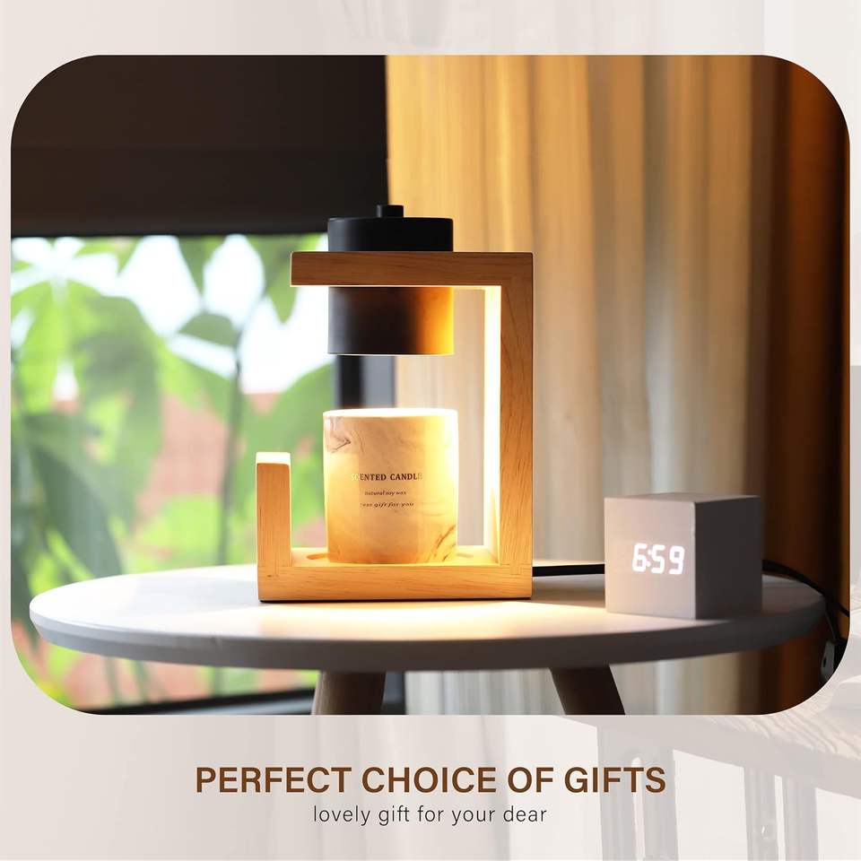 Lampada Scaldacandele in Legno Naturale con 2 Lampadine, Timer Regolabile e Dimmer