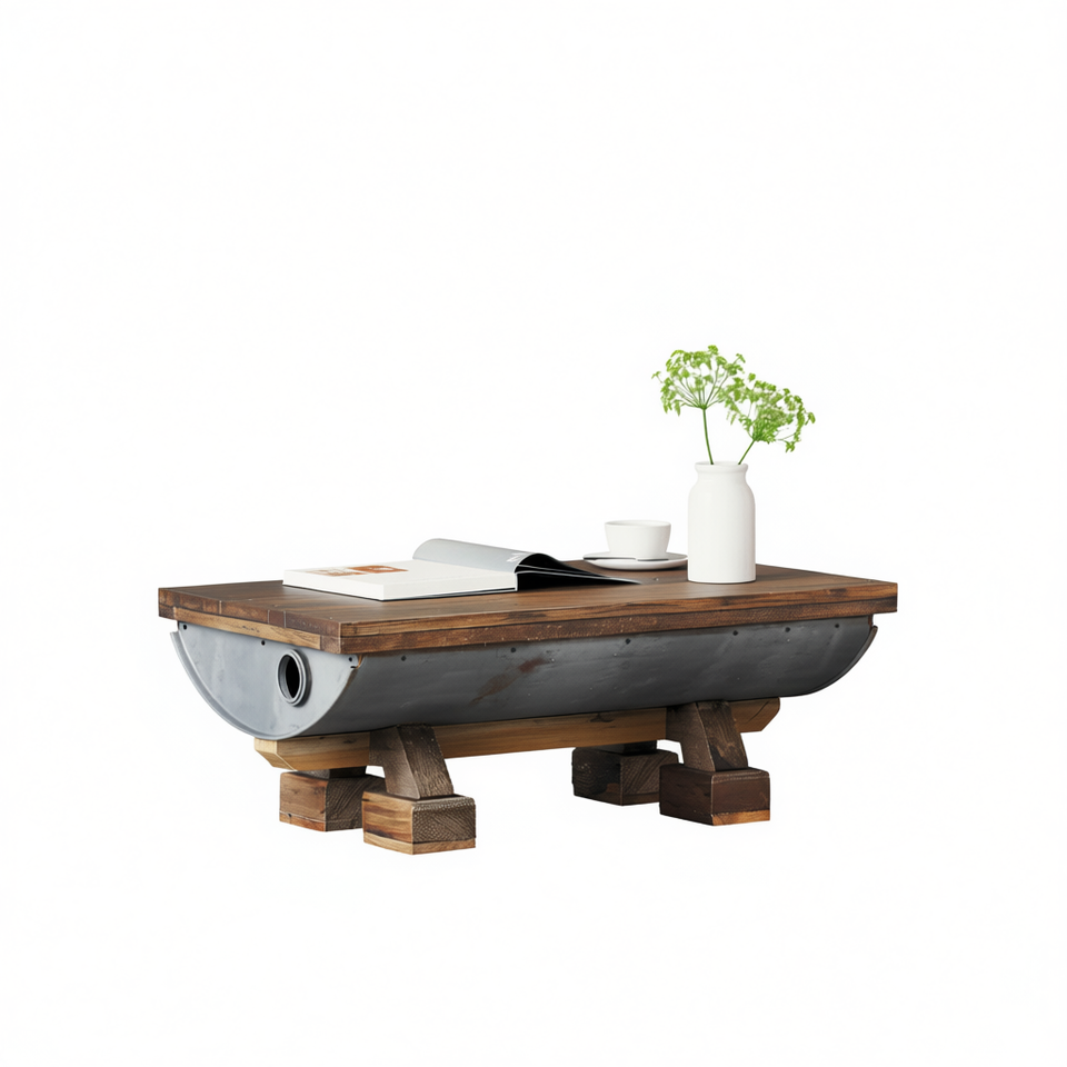 Tavolino da Caffè Industriale in Legno 35.43 X 19.69 X 13.78 Pollici, Fatto a Mano, Arredamento Moderno per Soggiorno