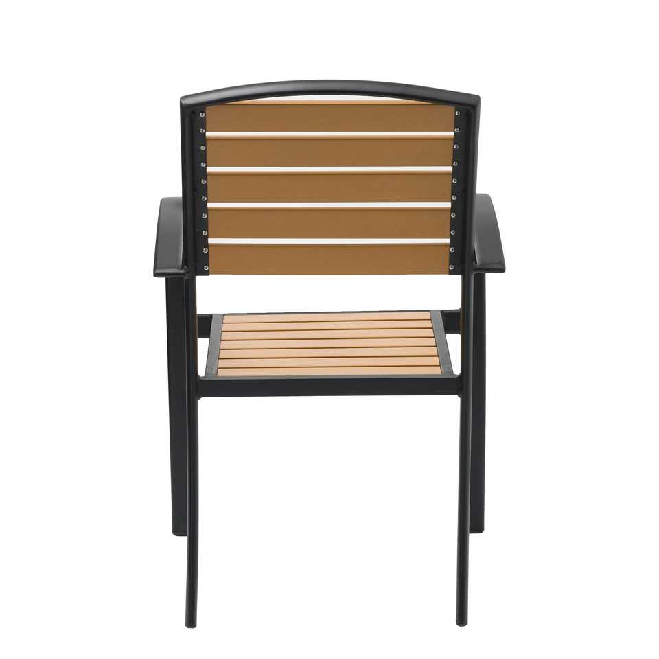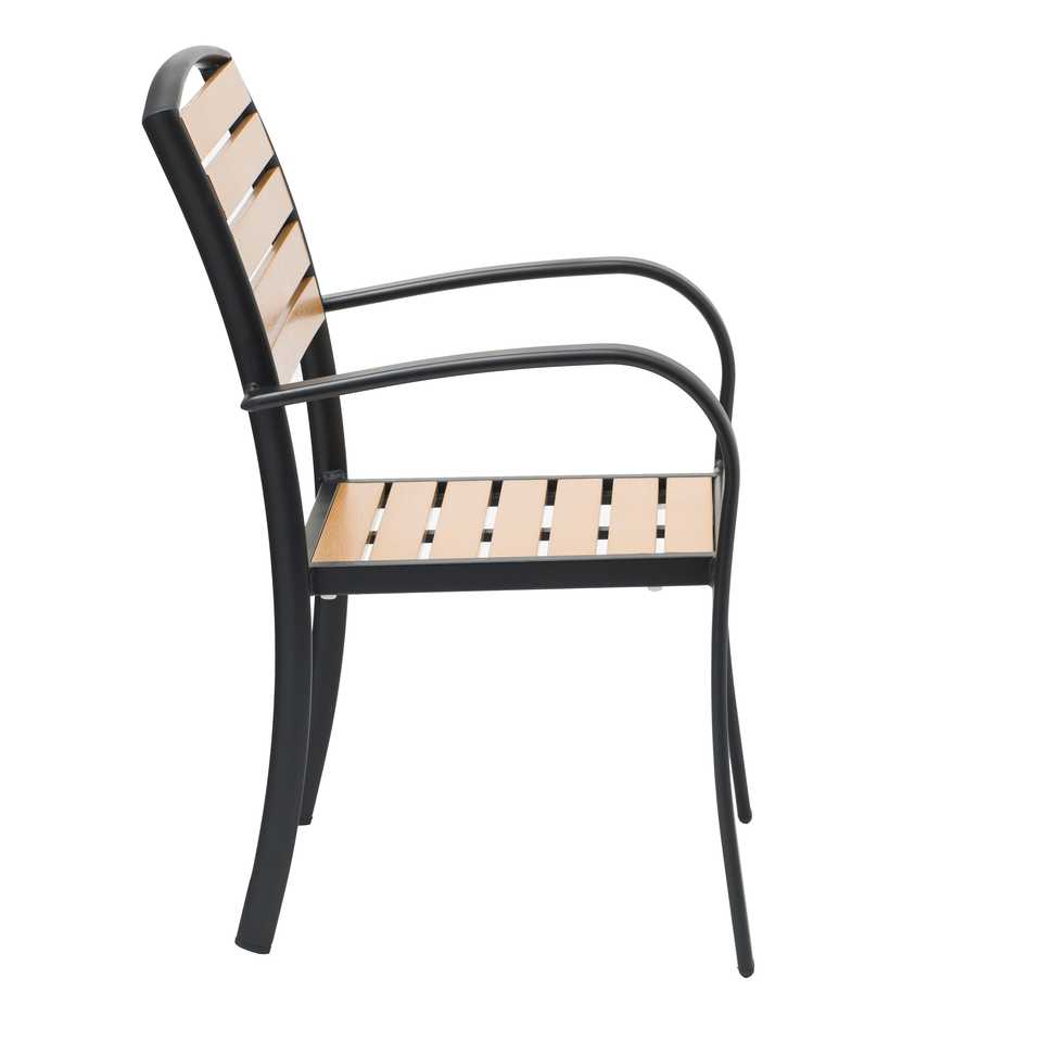Natural Wood Color Outdoor Armchair for Garden Black Aluminum Frame with Plastic Wood Slats