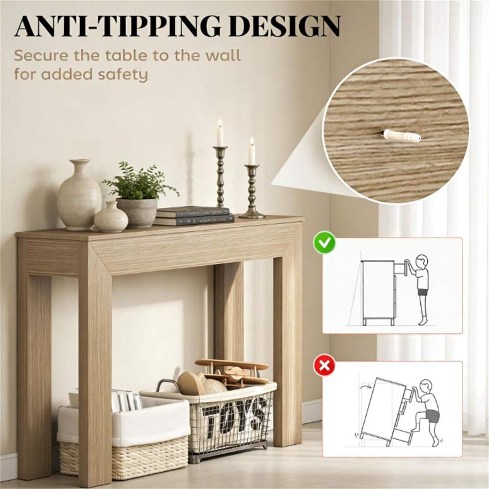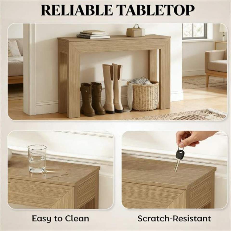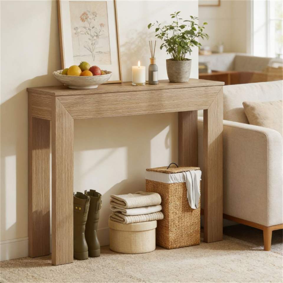 Consolle in Legno Naturale con Funzione di Scrivania e Spazio Contenitore, Ideale per Ingresso o Sala d'Attesa