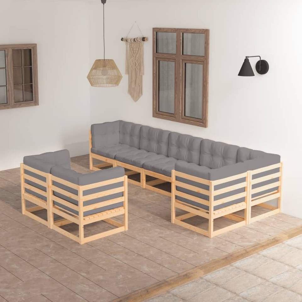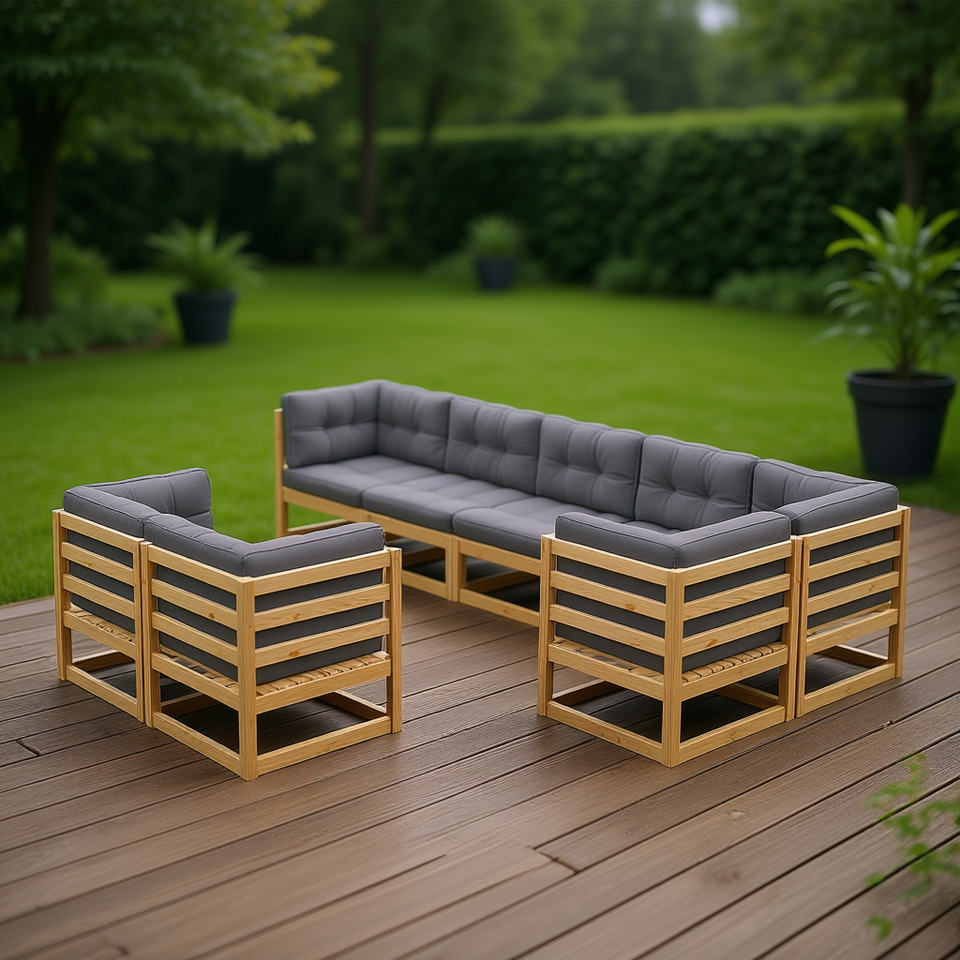 Set Lounge da Esterno in Legno Naturale per 6 Persone, Arredamento da Giardino dal Design Moderno