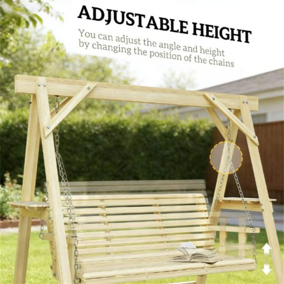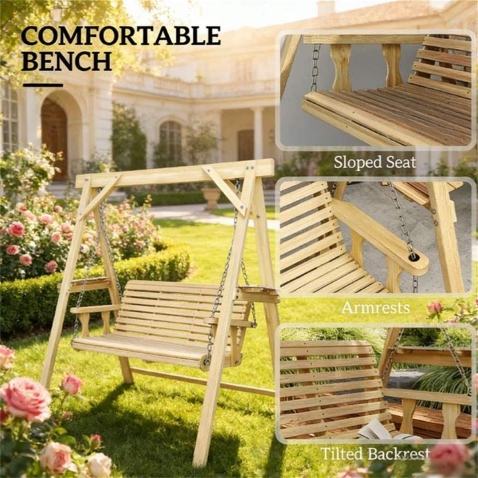 Altalena da Giardino in Legno Naturale con Supporto per Veranda, Terrazza o Giardino