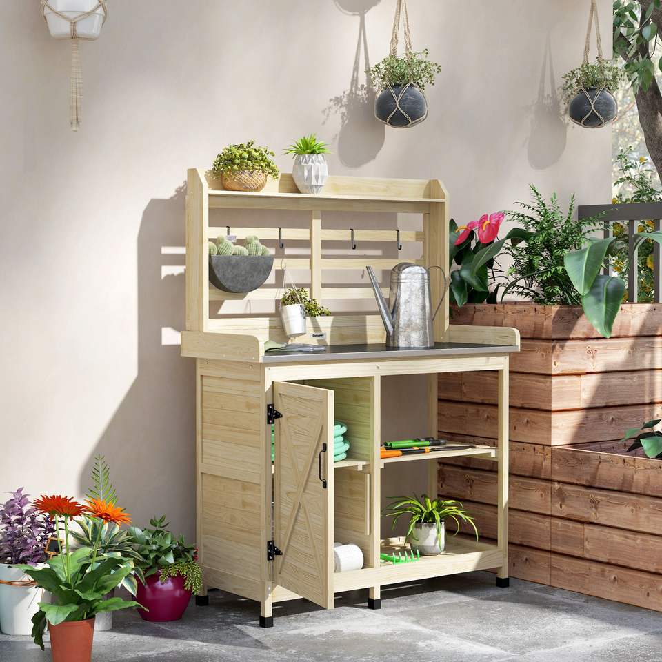 Panca per invasatura in legno naturale con lavandino di stoccaggio e rubinetto di acqua per il Patio del cortile balcone