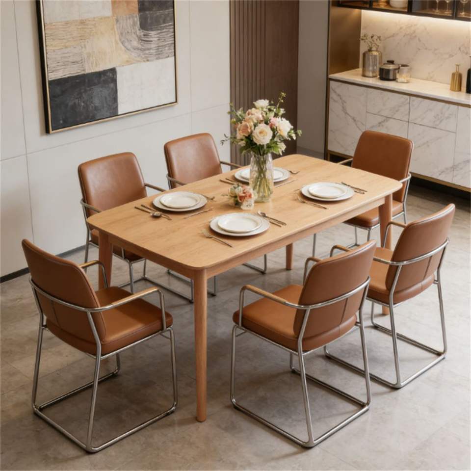 Tavolo da Pranzo Rettangolare in Legno Naturale per Cucina e Ufficio
