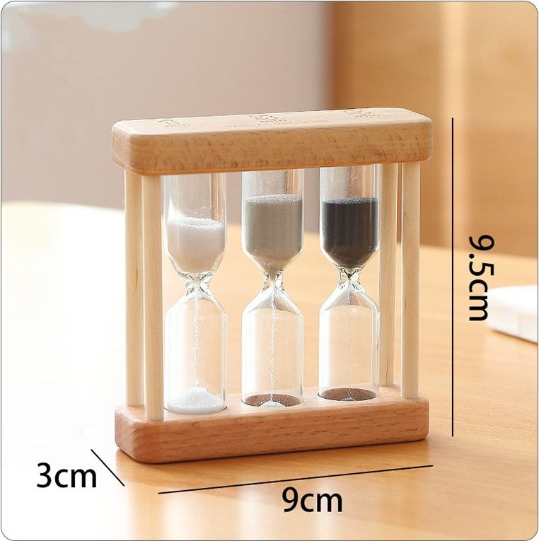 Timer a sabbia in legno naturale fatto a mano 3-in-1, timer a sabbia per tè, in vetro, per ufficio, scrivania, cucina, decorazione per la casa, matrimonio, compleanno