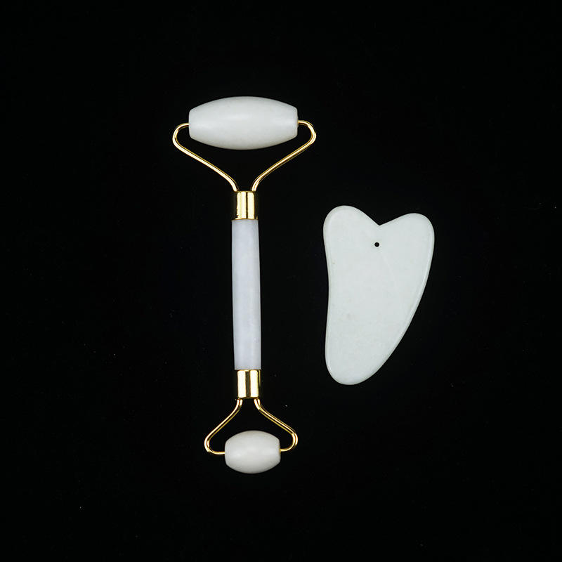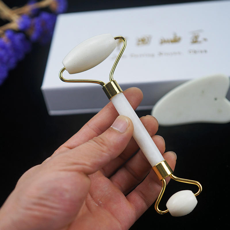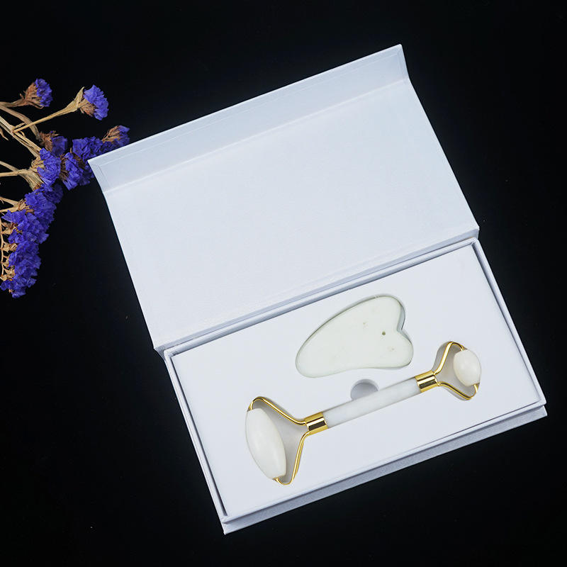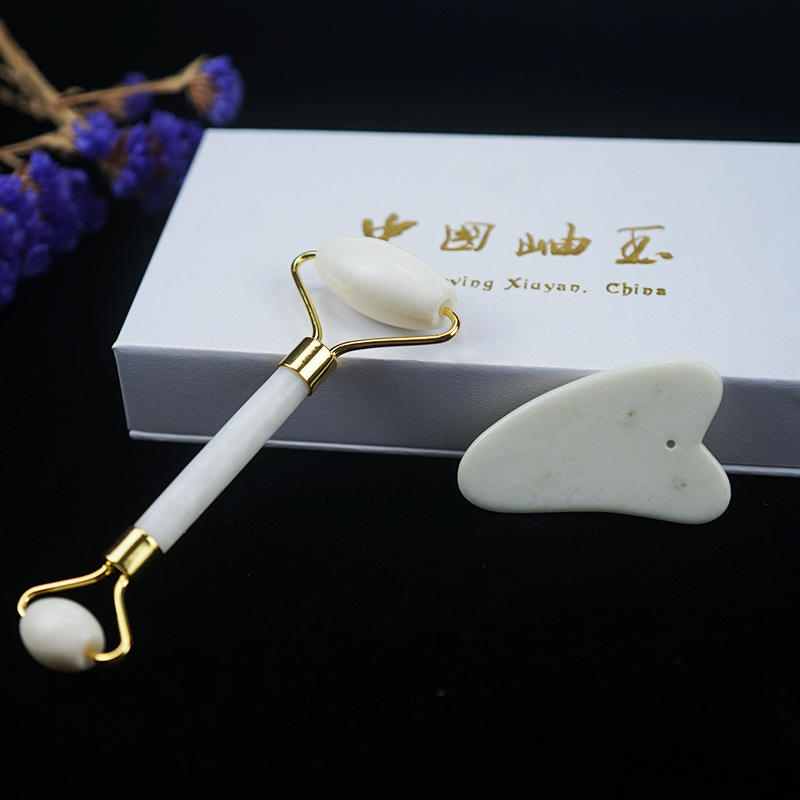 Natural Xiuyan Jade Stone Roller Gua Sha Set Facial Beauty Massage White Jade Roller With Box for Face