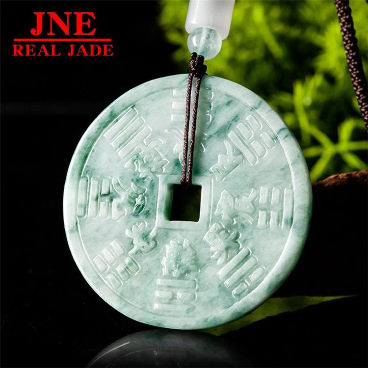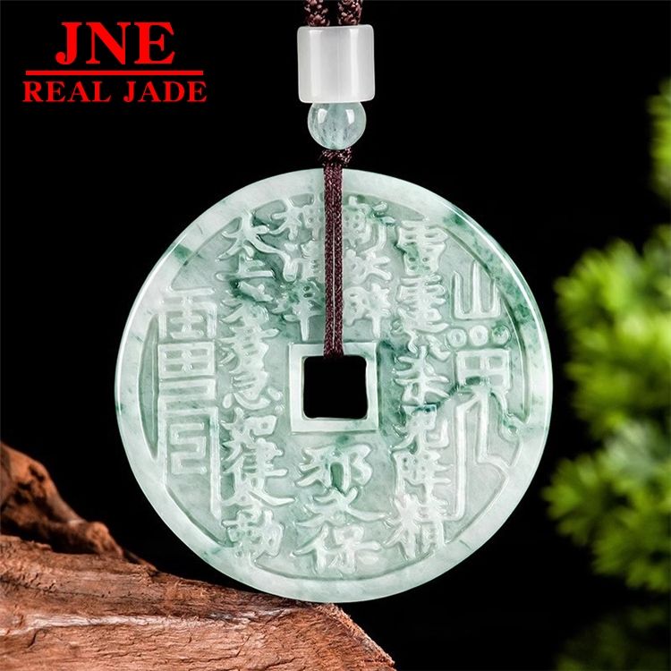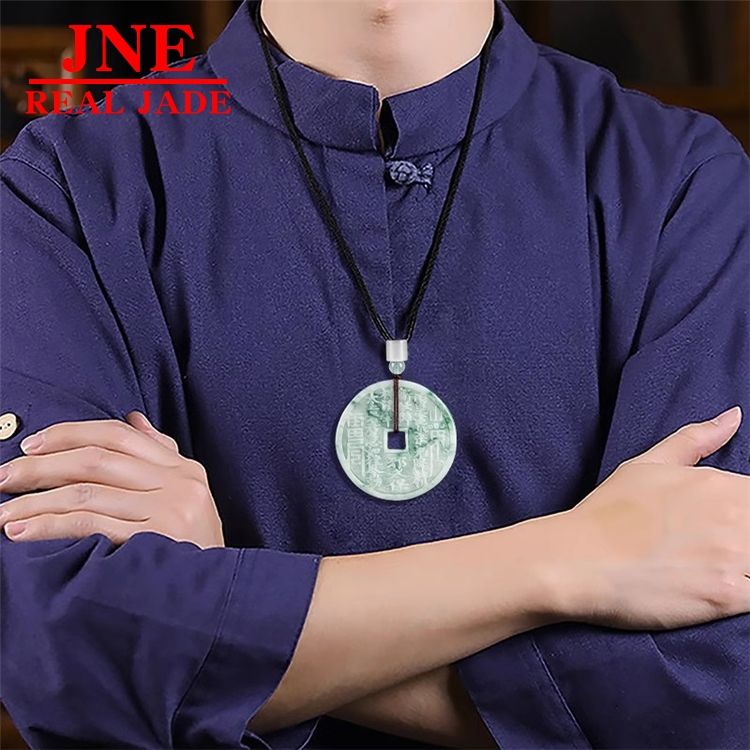 Ciondolo Ornamentale in Giada Naturale Tipo A con Motivo Fiore Fluttuante e Montagna Fantasma, per Uomo e Donna