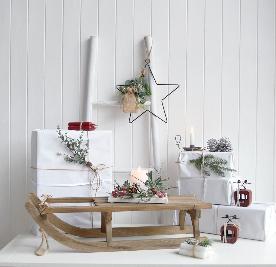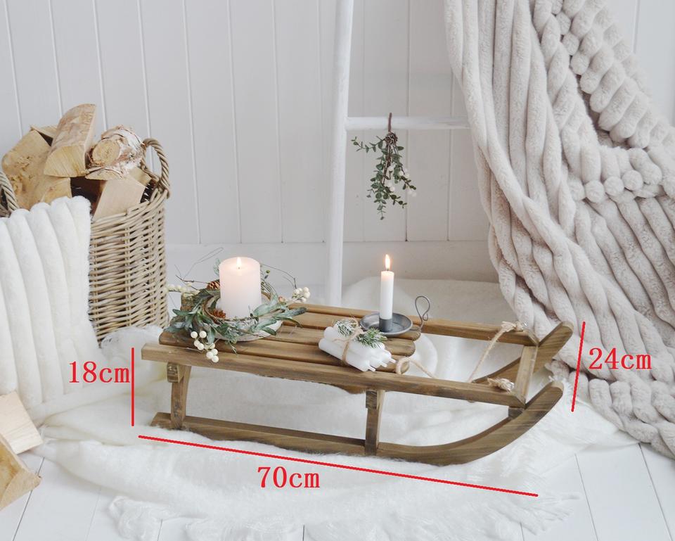 Decorazione Natalizia Ecologica, Slitta Rustica di Babbo Natale in Legno per Esposizione Natalizia