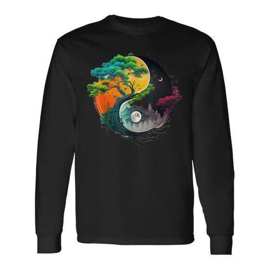 T-shirt a maniche lunghe con simbolo Yin Yang Taoista Naturale Zen Taijitu Yin Yang per uso promozionale