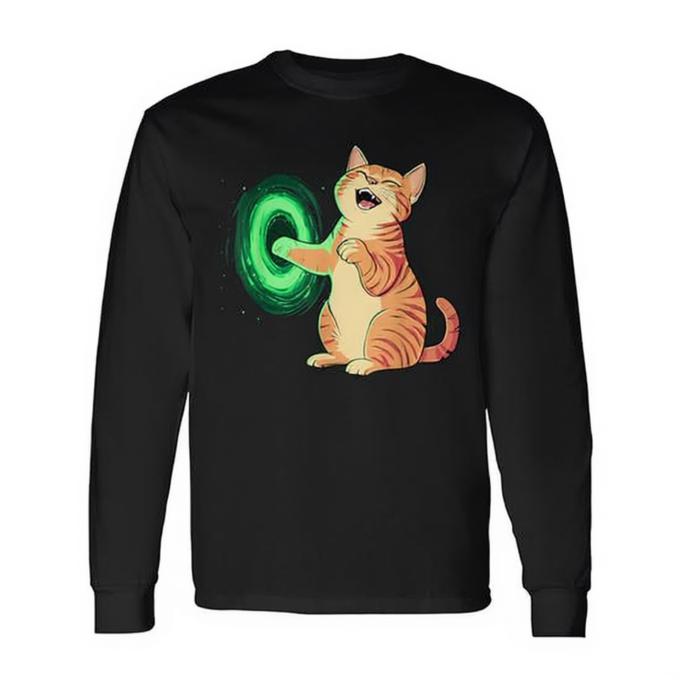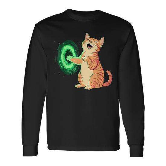 Maglietta a maniche lunghe Naughty Cat With Portal, unisex, taglia media per adulti