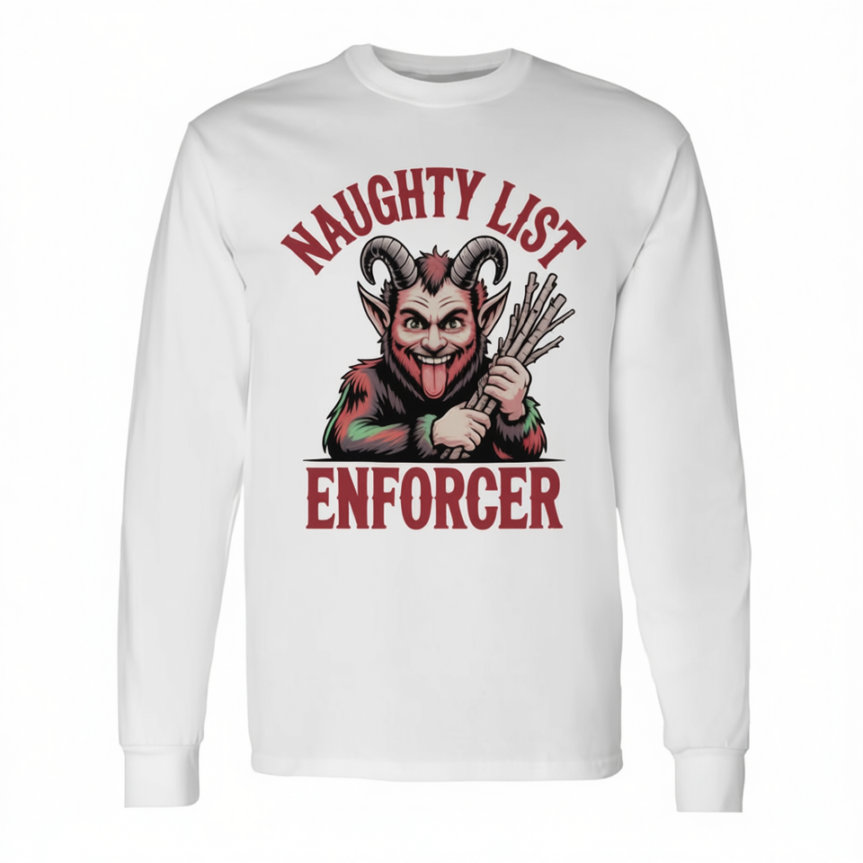 Maglietta a maniche lunghe Naughty List Enforcer, maglietta natalizia, girocollo unisex, taglia adulta