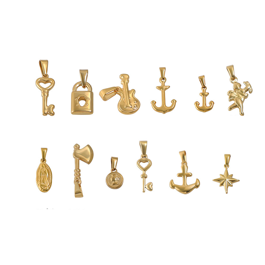 Ciondoli con Charm Nautico per Creazione di Gioielli Fai-da-Te | Ascia, Stella Rosa, Chitarra, Ancora e Cupido | Acciaio inossidabile placcato oro PVD 18 carati