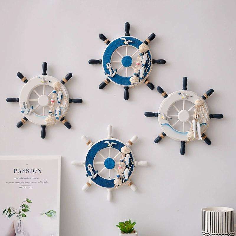 Nautical Wooden Boat Steering Wheel Wall Decor Classic Maritime Rudder Ornament for Coastal Home & Beach Themed Spaces
