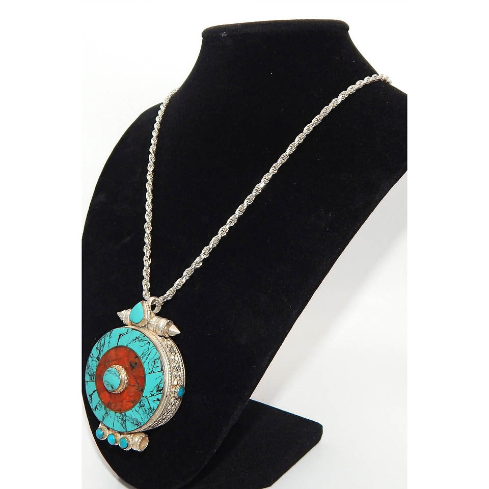 Collana in argento Sterling Navajo .925 con grande ciondolo turchese