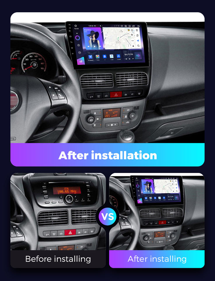 NaviFly NF Nuovissimo Autoradio Android 13 con Schermo Touch Retrattile QLED da 10 Pollici per Fiat Doblo 2015, Supporto Controllo Vocale