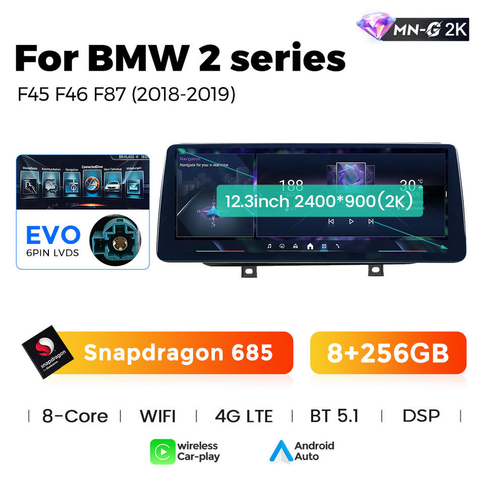 Navifly Snapdragon 685 più recente sistema Android 2K schermo 8 + 256GB di navigazione per auto per BMW 2 serie F45 F46 F87 2013-2019