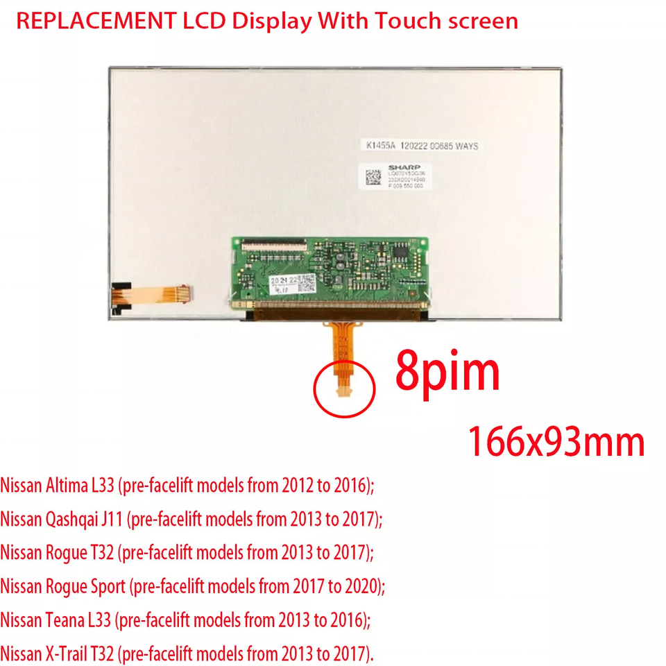 Modulo LCD TFT da 7 Pollici con Schermo Touch per Navigazione, Ricambio per Nissan Qashqai J11 2013-2017