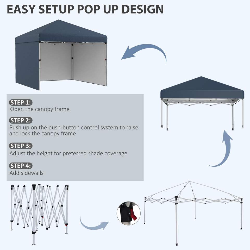 Gazebo Pop-up Blu Navy 3x3m con Pareti Laterali, Borsa per il Trasporto e Sacchi di Peso - Altezza Regolabile per Feste