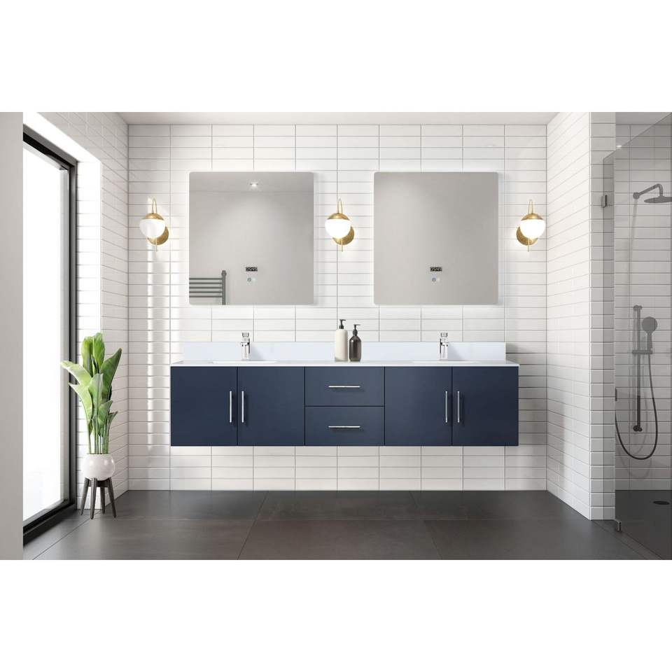 Blu navy 80 pollici. L X 22 Pollici Mobile bagno doppio con piano in marmo colato da 30 pollici Set di Specchi LED e Rubinetti per Mobili da Bagno