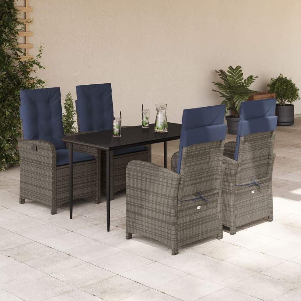 Set da pranzo da giardino in rattan blu navy e grigio, 4 posti, mobili da esterno resistenti alle intemperie, stile contemporaneo
