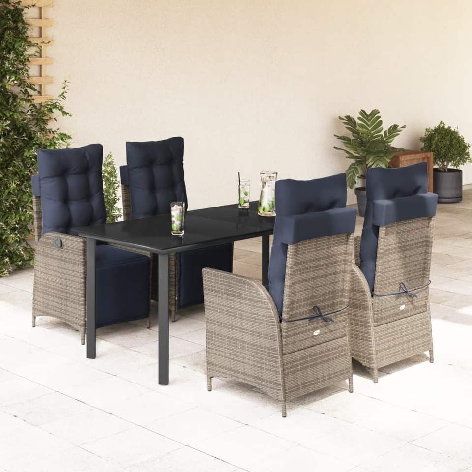 Set da pranzo da giardino in rattan blu navy e grigio, 4 posti, resistente alle intemperie, mobili da esterno dal design contemporaneo