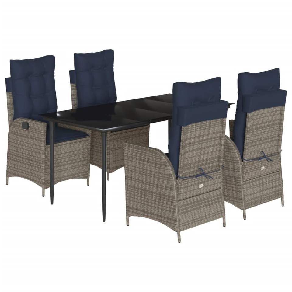 Set da pranzo da giardino in rattan blu navy e grigio, 4 posti, mobili da esterno resistenti alle intemperie, design contemporaneo