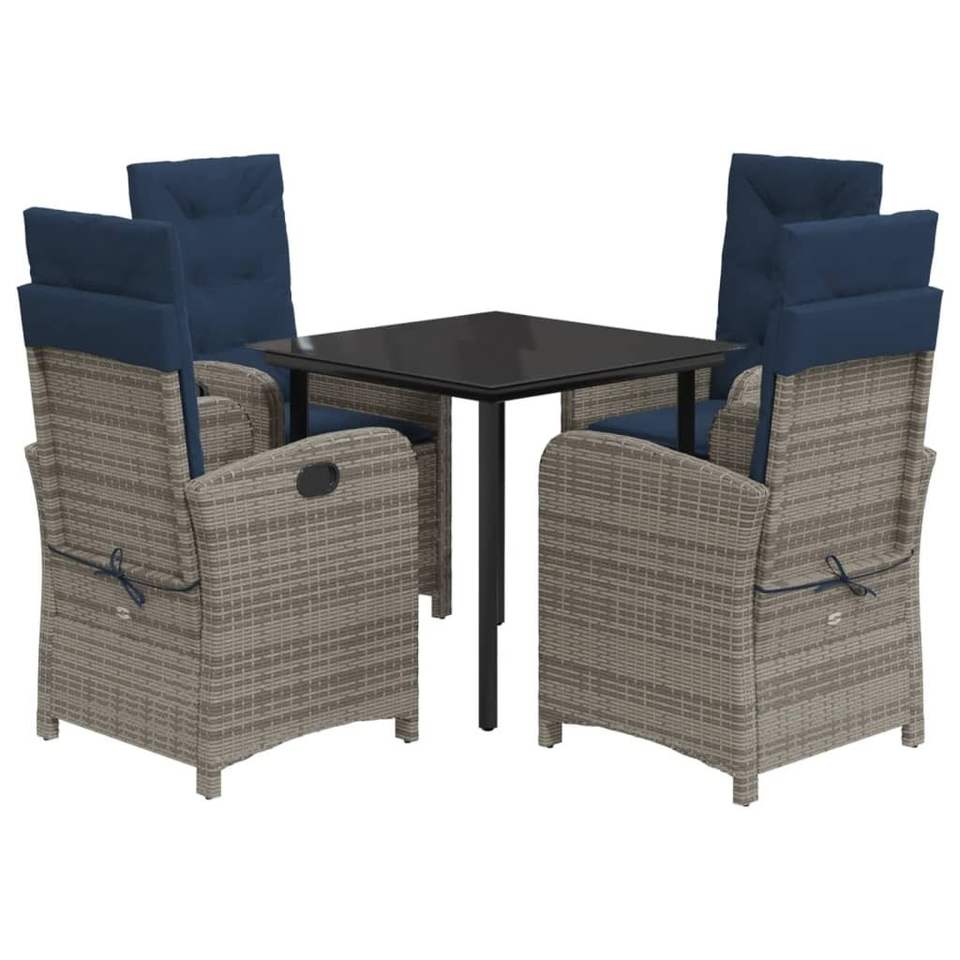 Set da pranzo da giardino in rattan blu navy e grigio, 4 posti, mobili da esterno resistenti alle intemperie, stile contemporaneo