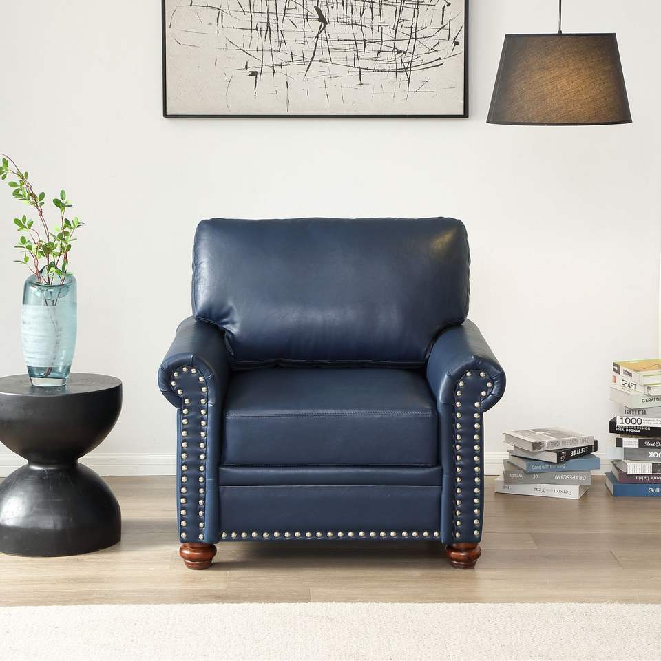 Poltrona Singola in Ecopelle Blu Navy con Gambe in Legno per Soggiorno