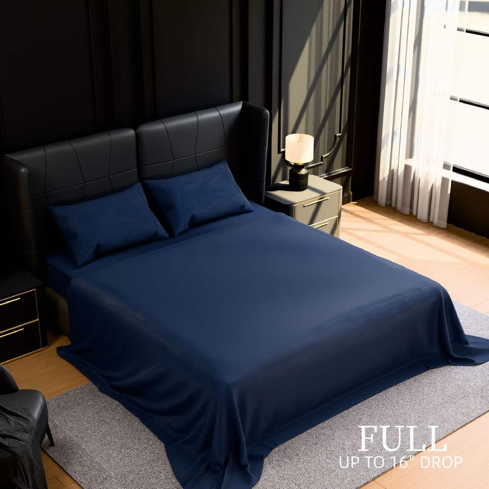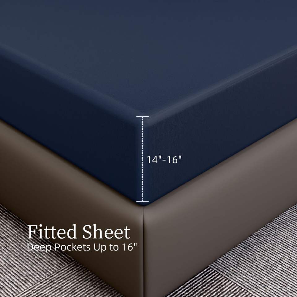 Set di Lenzuola Blu Navy in Microfibra, Resistenti al Restringimento e allo Sbiadimento, Facili da Curare, 4 Pezzi, per Letto Matrimoniale