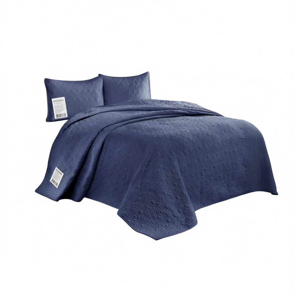 Navy King Reversible Bedspread Set Elegant Coverlet for Comfortable Bedding