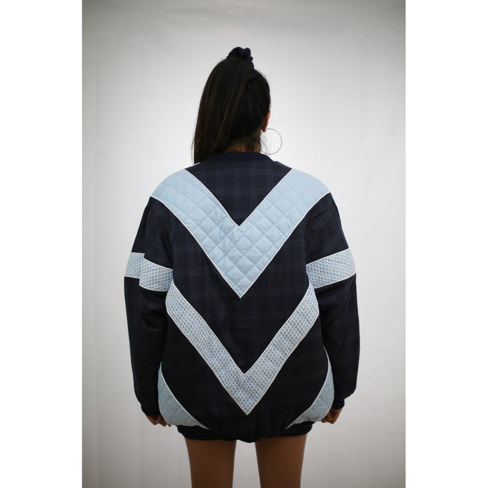 Bomber lungo in Tartan blu scuro