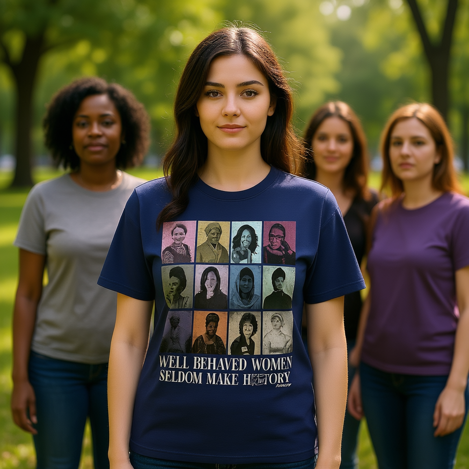 Navy Women's T-Shirt Short Sleeve Crew Neck Feminist Print 100% Cotton Jersey Regular Fit All Seasons Casual Style