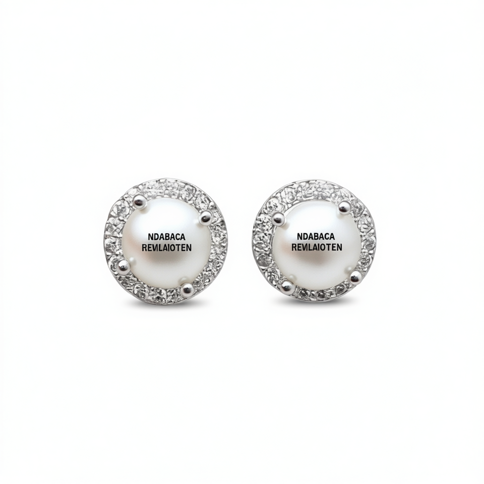 Ndabaca Revlaioten Pearl Stud Earrings White Gold 925 Silver Cultured Pearl Round AAA Classic Everyday Wear
