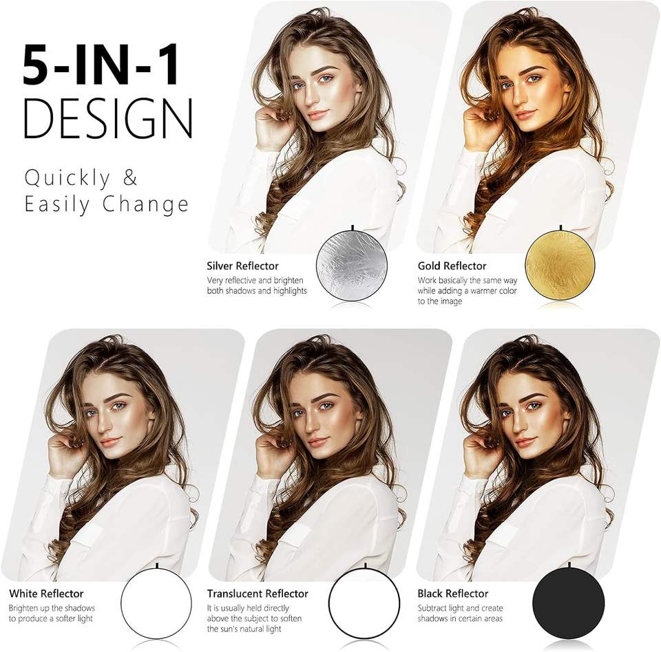 Neewer Riflettore Diffusore Luminoso Pieghevole 5 in 1 da 43 Pollici/110 Centimetri con Borsa