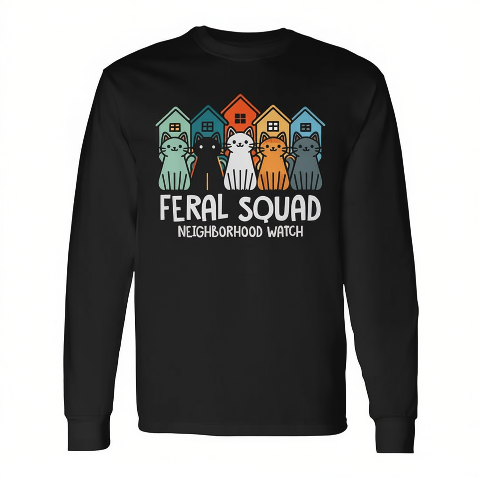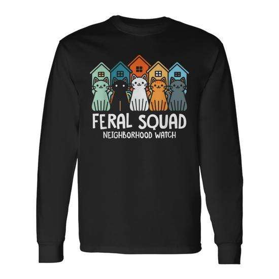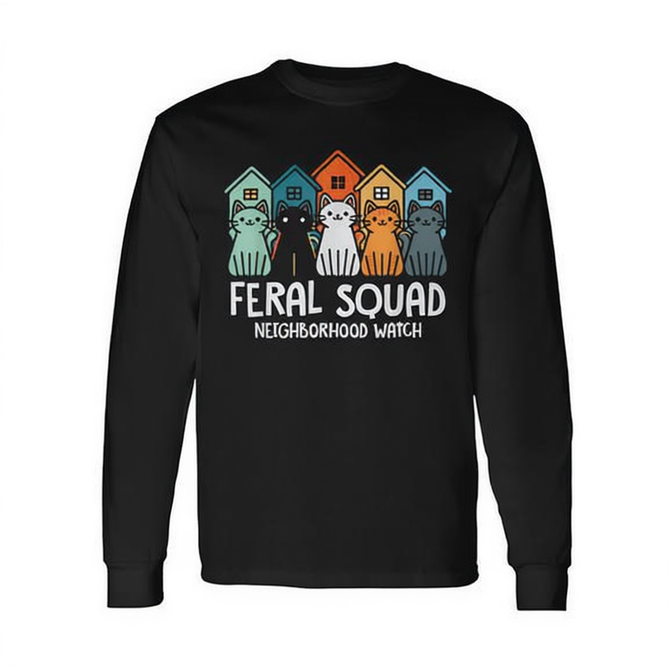 Maglietta a maniche lunghe Neighborhood Watch per la promozione dell'adozione e del soccorso di gatti, T-shirt promozionale Feral Squad