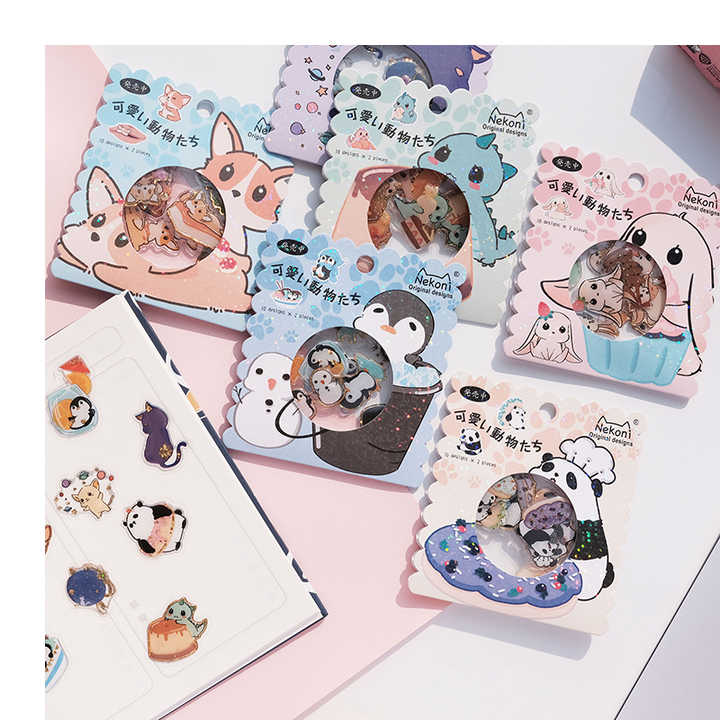 Nekoni simpatico cartone animato impermeabile Girly adesivo fiocchi per diario animale stazionario adesivi Pack
