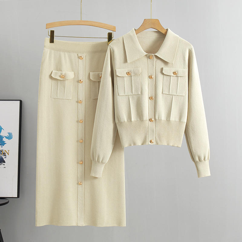 Cardigan da donna in maglia con risvolto alla francese, antipiega, in viscosa e poliestere, per primavera autunno, stile Neo Cross-border